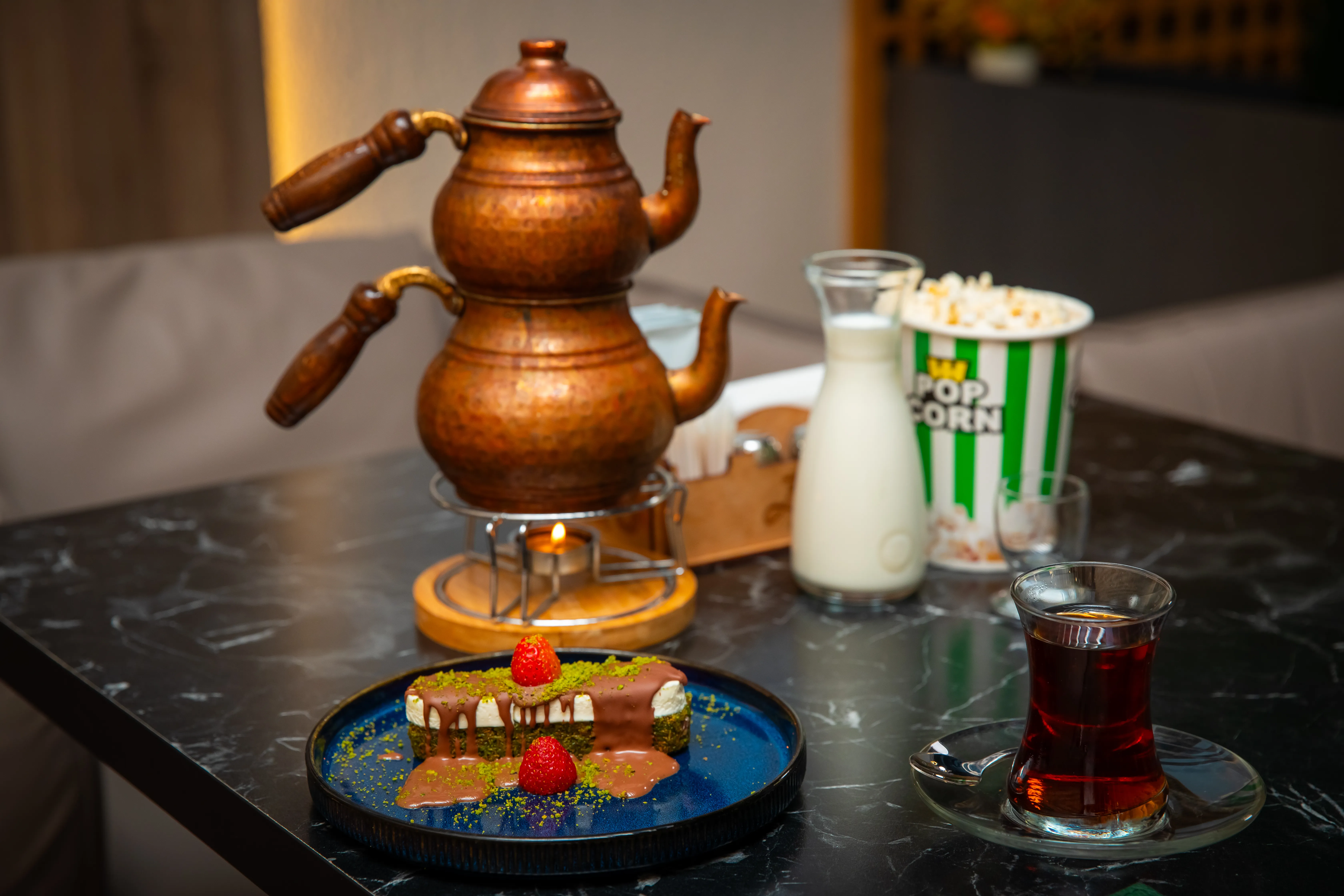 Katmer kafesi çalt naharlanmak üçin hem, günortanlyk ýa-da agşamlyk edinmek üçin hem amatlydyr. Menýusynyň köpdürlüligi bu kafeni maşgala duşuşyklary hem-de dostlar bilen duşuşmak üçin ajaýyp künjege öwürýär.