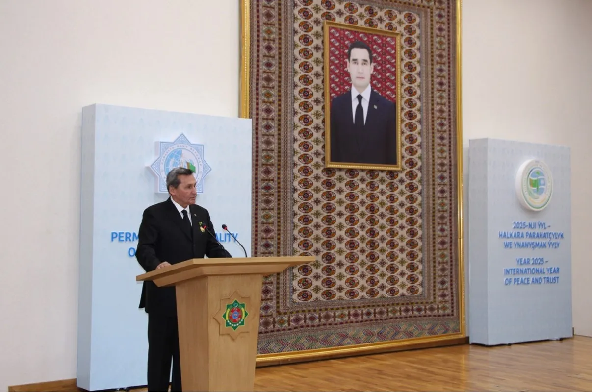 Soňra Ministr «Türkmenistanyň Bitaraplygynyň 30 ýyllygyna» atly Türkmenistanyň ýubileý medaly bilen sylaglamak hakyndaky Türkmenistanyň Prezidentiniň Permanyny okady we Daşary işler ministrliginiň işgärlerine döwlet sylaglaryny we ýadygärlik nyşanlary dabaraly ýagdaýda gowşurdy.