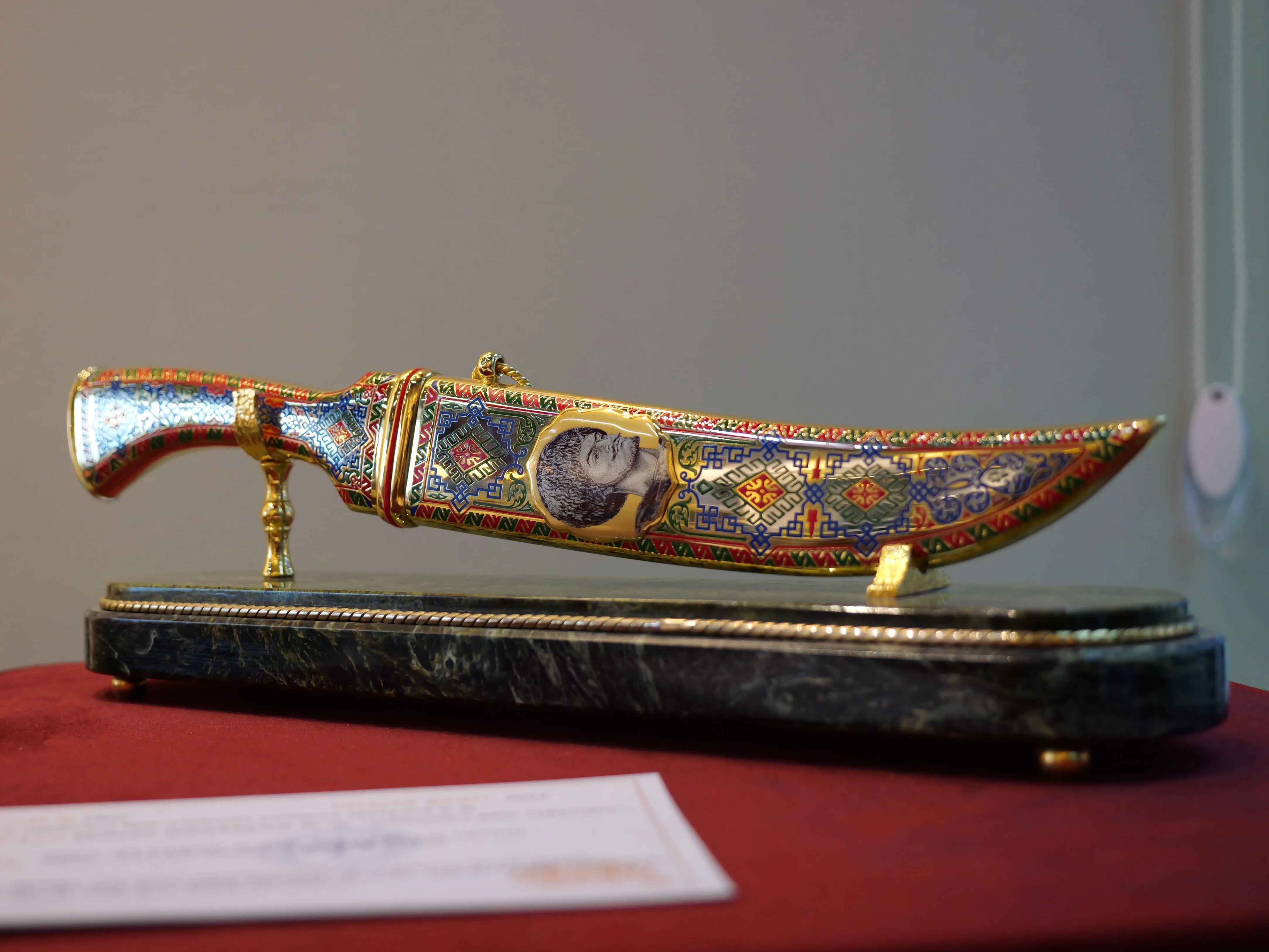 Ekspozisiýanyň merkezi eksponatlarynyň biri — bezegli zergärçilik çarçuwasy bilen taýýarlanan uly göwrümli Keramatly Kuranyň kompozisiýasydyr. Çarçuwa zergärçilik latun metalyndan elde ýasalyp, 24 karatlyk altyn bilen örtülendir.