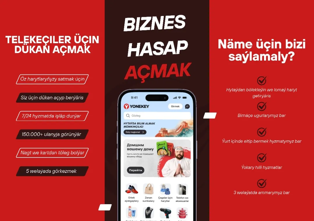 Ýönekeý kompaniýasynyň aýratyn artykmaçlyklarynyň biri hem telekeçiler üçin döredilen mümkinçiliklerdir. Harytlaryň satuwy bilen meşgullanýan ulanyjylar öz önümlerini YONEKEY programmasynda ýerleşdirip, olary 150 müňden gowrak ulanyjydan ybarat müşderiler hödürläp bilýärler.