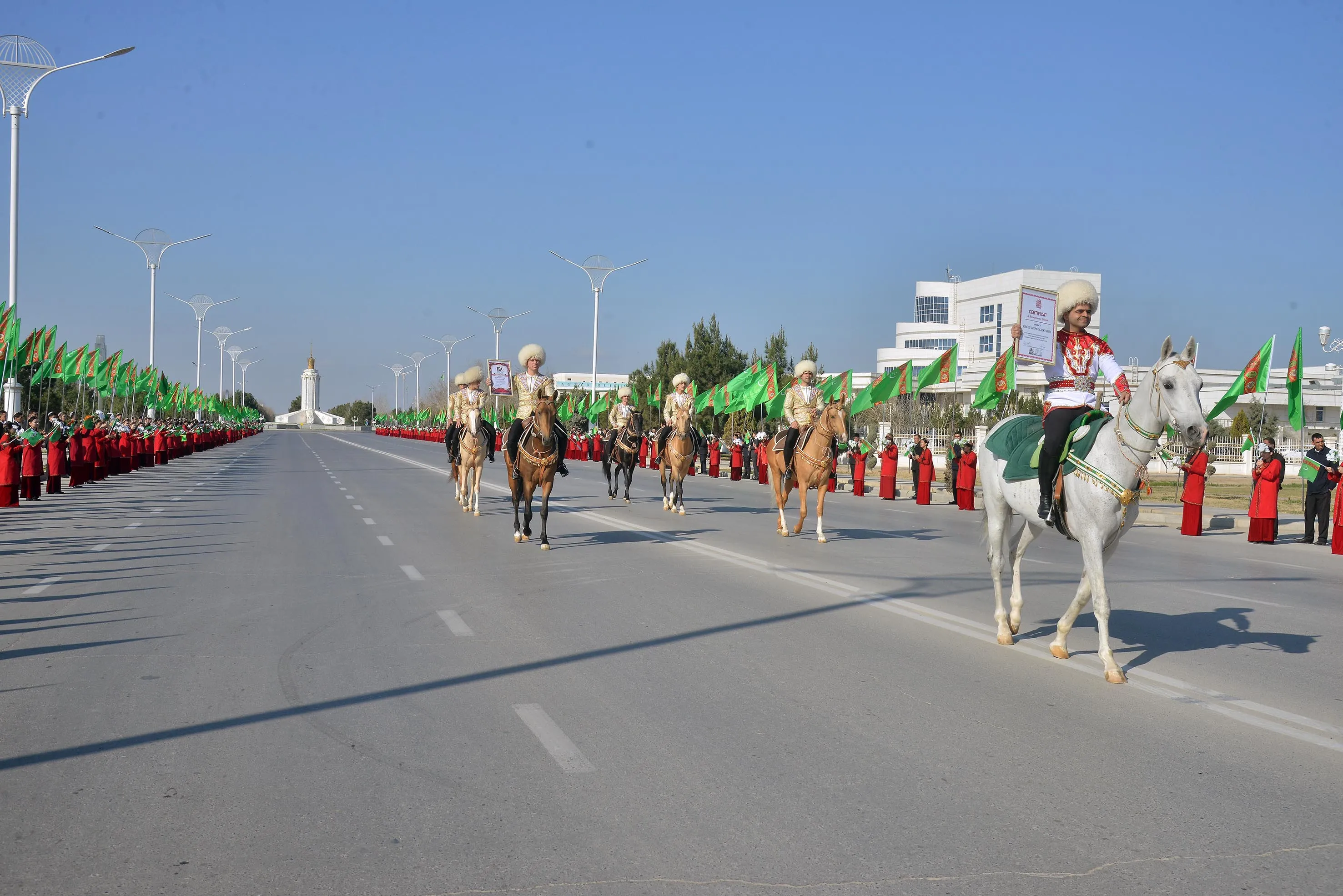 Ozal habar berşimiz ýaly, 2026-njy ýylyň ýanwarynda Monako Knýazlygynyň Monte-Karlo şäherinde 48-nji halkara sirk sungaty festiwaly geçirilip, onuň çäklerinde «Galkynyş» milli at üstündäki oýunlar toparyna sirk sungatyna uly goşandy üçin Bütindünýä sirk federasiýasy hem-de Ýewropa Sirk assosiasiýasy tarapyndan halkara şahadatnamalar gowşuryldy. Bu wakanyň hormatyna Arkadag şäherinde, Aşgabatda dabaraly çäreler ýaýbaňlandyryldy. Indi bolsa toparyň agzalary ýurduň welaýatlarynda bolup, bu üstünligiň şanyna guralýan çärelere gatnaşýarlar we at üstünde ýerine ýetirýän täsin oýunlary bilen çykyş edýärler.