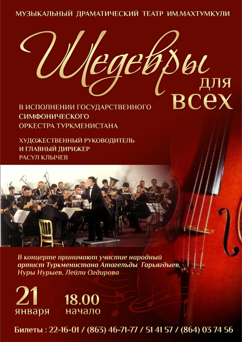 В киноконцертном зале «Туркменистан» состоится бесплатный концерт