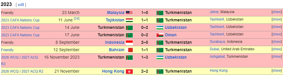 Takımı, 2026 Dünya Kupası elemeleri kapsamında bu yılın son maçını 21 Kasım'da Hong Kong milli takımıyla oynadı. 2023 yılını takım, üç beraberlik ile galibiyet alamadan tamamladı.
