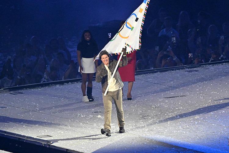 Simon Biles, olimpiyat bayrağını stadın çatısında kurulan düzenekle sahneye inen ABD'li sinema oyuncusu Tom Cruise'a verdi. Ünlü aktör, motosikletle sahneden ayrılırken hazırlanan senaryo çerçevesinde ABD'de dalgalandırılan bayrak statta ekranlara yansıtıldı.