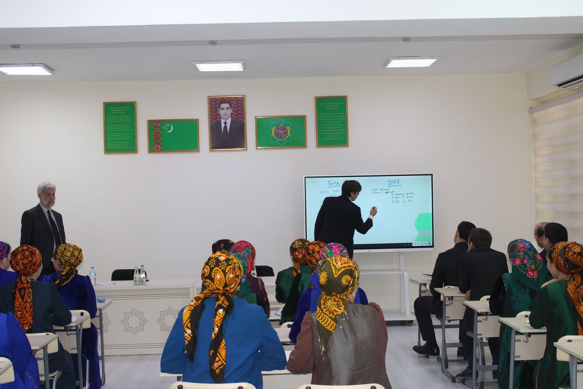 Türkmenportal muhabirinin aktardığına göre İngiliz uzmanlar, “Orta Asya'da İngilizce Öğrenimini Hızlandırma” programı hakkında konuştu ve etkili öğretim yöntemlerini paylaştı. Toplantının bir parçası olarak, küçük gruplara ayrılan öğretmenlerin, kullanılan öğretim yöntemlerindeki benzerlik ve farklılıkları tartıştıkları testler gerçekleştirildi.