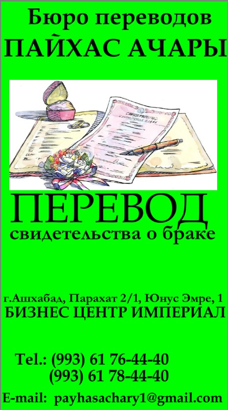 Adres: Aşgabat ş., Parahat 2/1, Ýunus Emre köçesi 1, “Imperial” Halkara işewürlik merkeziTelefon: +99361764440