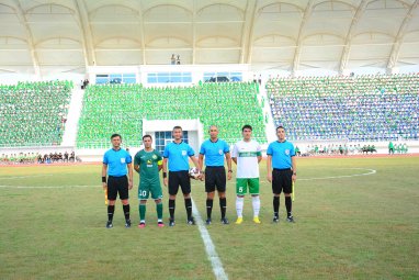 Матч обслужит бригада арбитров во главе с Алибеком Сапаевым из Дашогуза. Помогать ему будут Палван Палванов (Дашогуз) и Ахмед Бегназаров (Мары). Резервный судья – Юсуп Джумамурадов (Ашхабад). Инспектор матча Эльдар Рамазанов (Ашхабад).