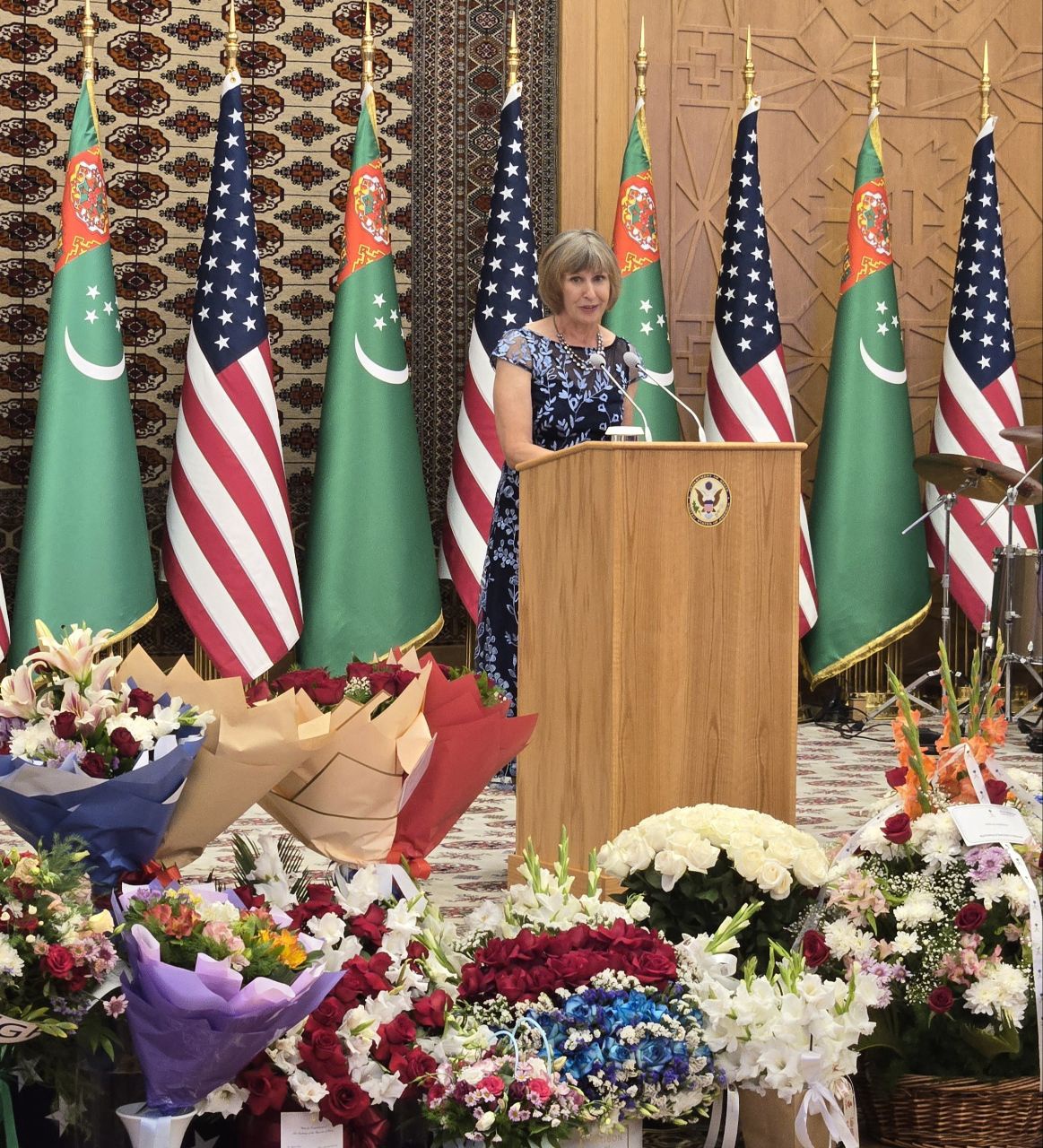 В своем выступлении посол США Элизабет Руд отметила, что крепкие отношения между США и Туркменистаном продолжают развиваться.
