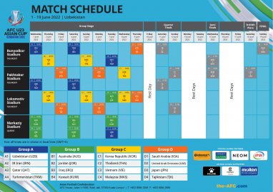 Стало известно расписание матчей сборной Туркменистана на молодежном Кубке Азии 2022 года. Турнир пройдет в городах Ташкент и Карши (Узбекистан) с 1 по 19 июня.