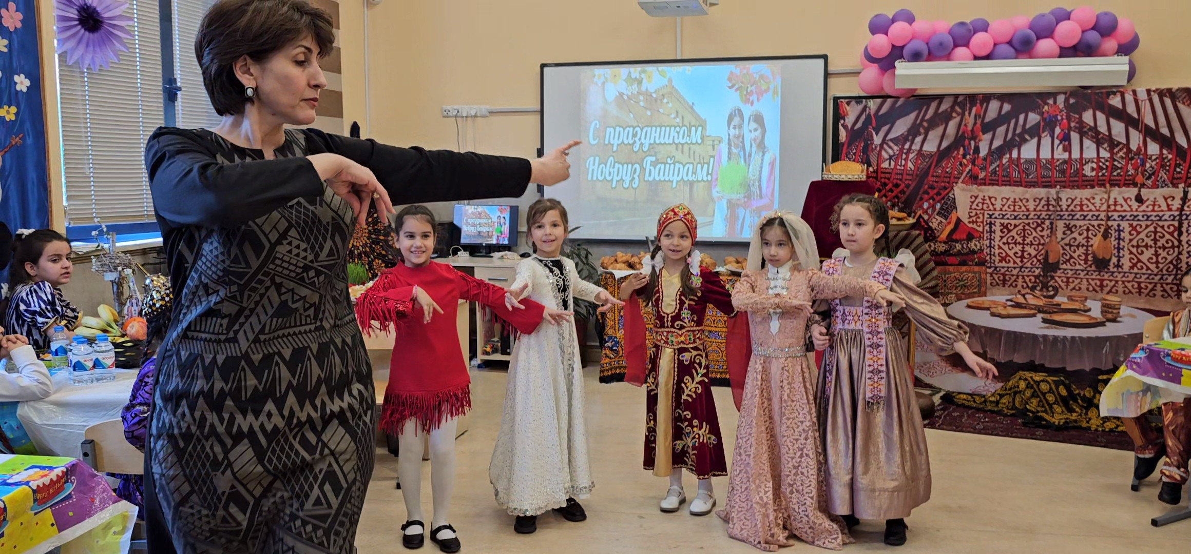 В Совместной туркмено-российской средней общеобразовательной школе имени А.С. Пушкина в Ашхабаде в преддверии долгожданного Национального праздника весны – Международного дня Новруз, ученики 1 «Б» класса с нетерпением ждали тематический урок «Разговоры о важном». Классный руководитель Елена Николаевна Товмасян подготовила для ребят увлекательную программу, погружающую в атмосферу древнего праздника.