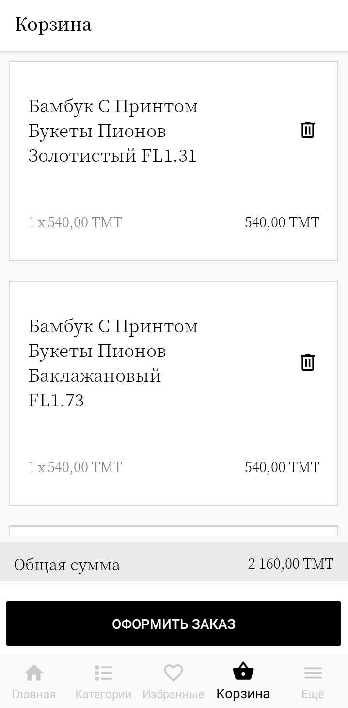 В корзине представлена полная информация о названии товара, его цене и количестве. Чтобы приобрести товары в корзине, необходимо нажать на кнопку «Оформить заказ»