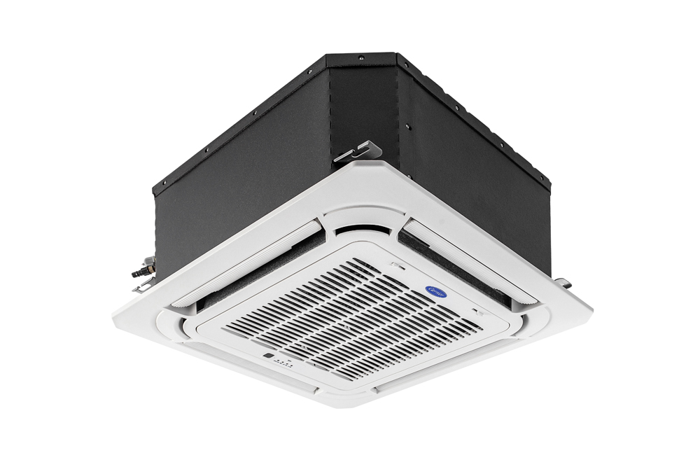 3. Кассетные – также, как и предыдущий вариант, предназначены для создания микроклимата в просторных помещениях. Данная система обладает круговым и четырехсторонним воздух распределением.