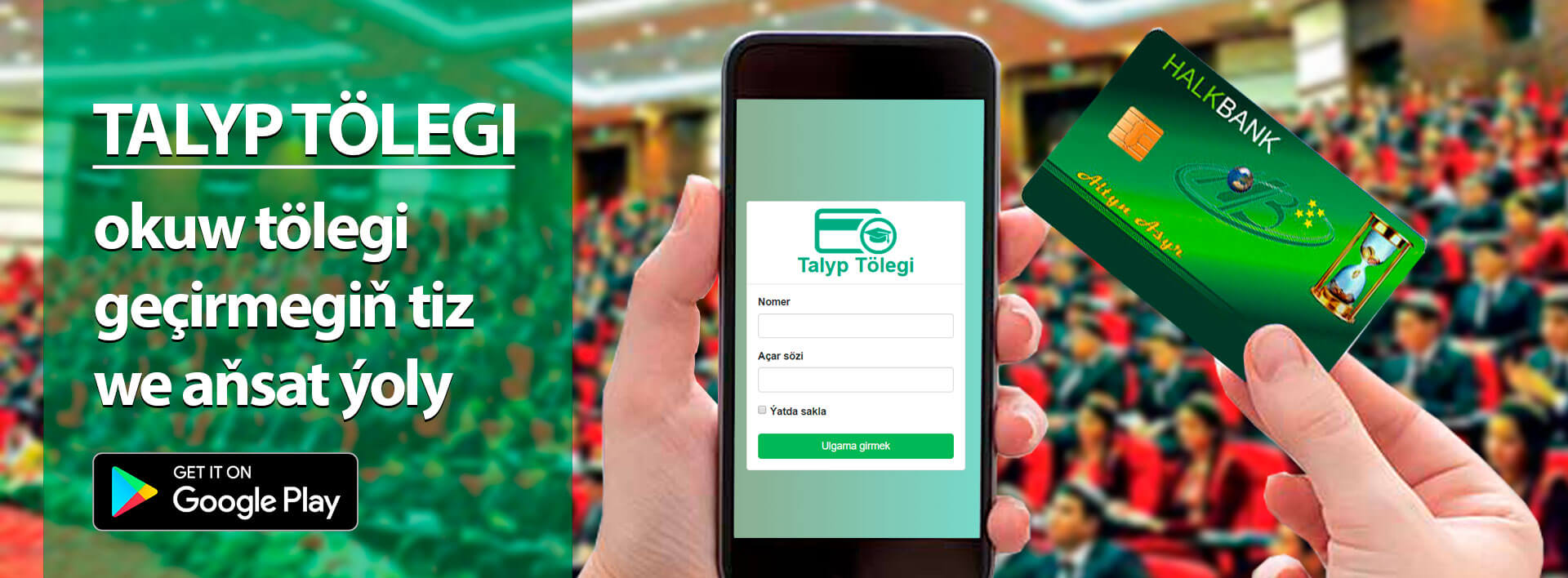 8. Good news for students! You can pay for your studies through the "Talyp tölegi" service of Halkbank, without going to the Bank.