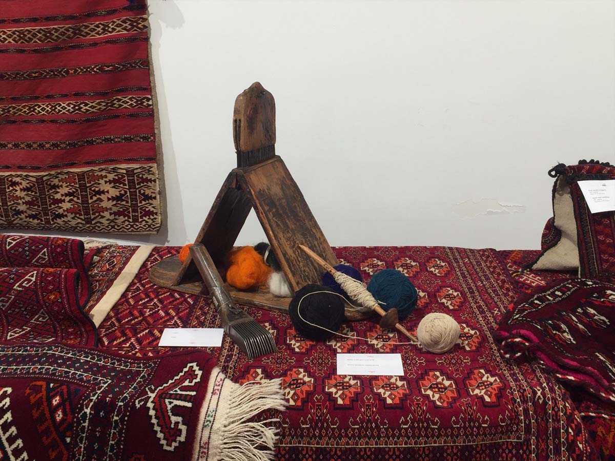 The exhibition presented to visitors includes examples of traditional clothing - gyňaç, telpek, men's gyrmyzy don and shirt. The filigree hand embroidery of Turkmen craftswomen amazes with its grace and beauty. Some of the exhibits give a visual representation of the interior decoration of the Turkmen yurt. Samples of magnificent Turkmen carpets are also presented here.