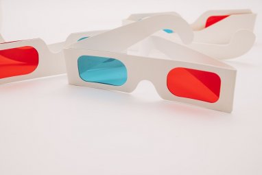 When watching 3D movies, the glasses produce a slightly different image for each eye.