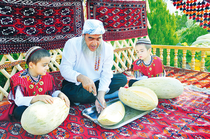 5. Гастрономическим достоянием Туркменистана недаром считается Туркменская дыня, которая занимает почетное место в одном ряду с ахалтекинскими скакунами и туркменскими коврами.