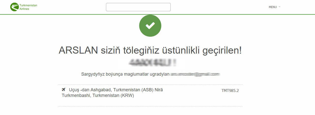 Читатель «Туркменпоратала» желает всем удачной покупки авиабилетов в режиме онлайн.