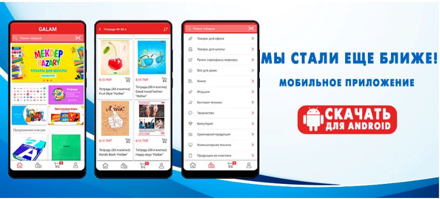 В ряду торговых интернет-площадок, действующих по всему Туркменистану, Galam.tm - один из крупнейших онлайн-магазинов офисной канцелярии, книг, товаров для школы и творчества, сувениров и подарков.