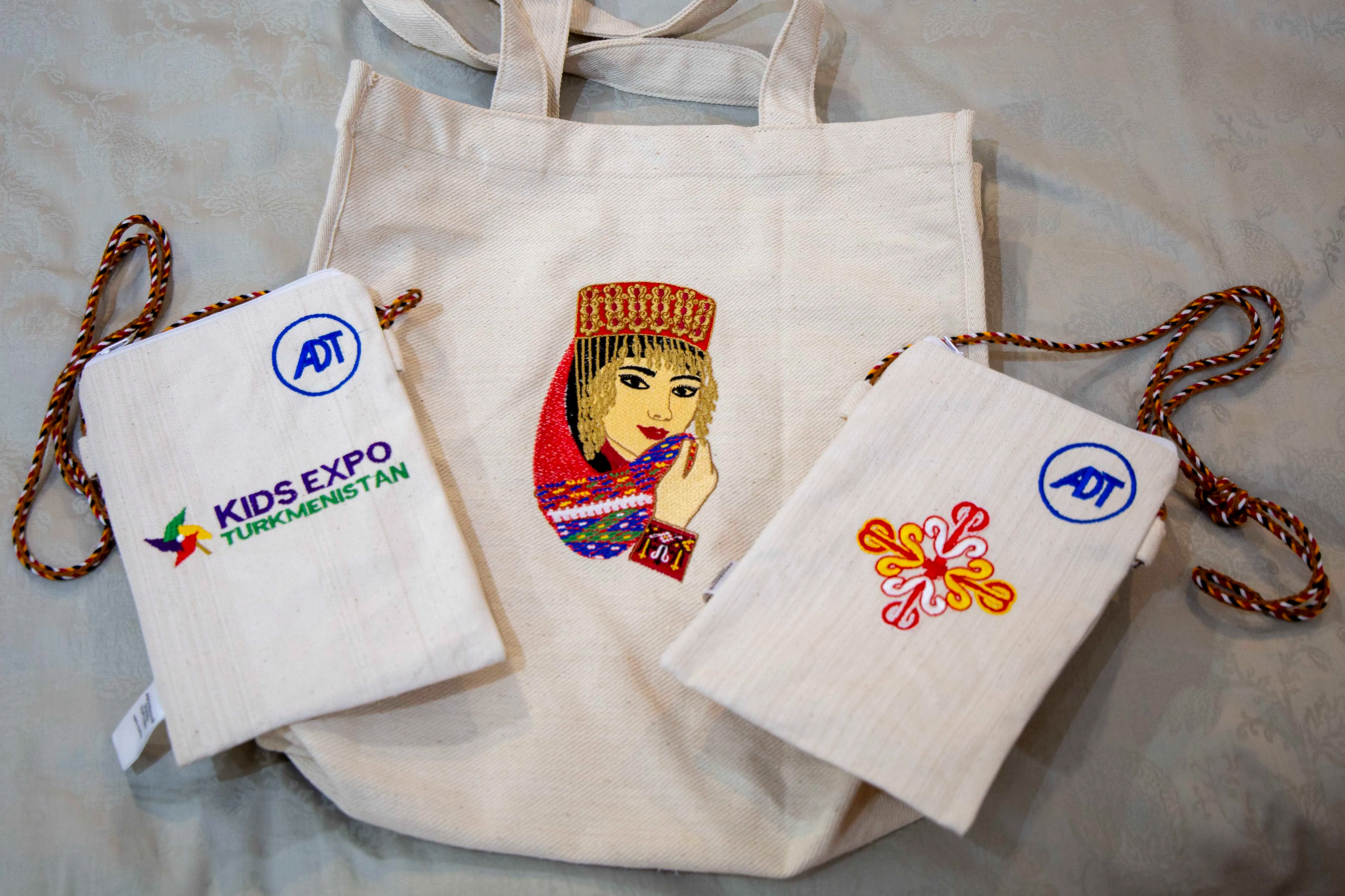 В магазине текстильной продукции АТК «Goza» также представлены шопперы из плотной ткани с искусной вышивкой и лаконичные мини-сумочки для смартфонов. Изюминка таких аксессуаров – аладжа – традиционный туркменский оберег, который превращает современную вещь в личный талисман.