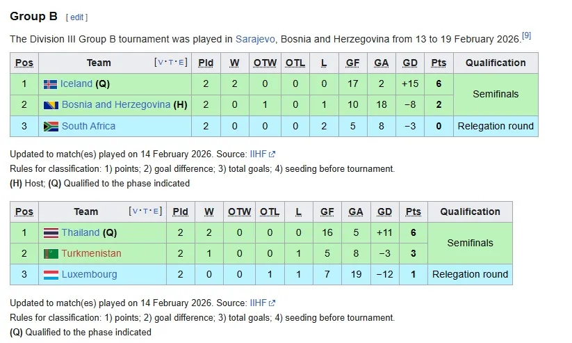 По итогам двух туров Исландия с 6 очками возглавляет группу «A». Босния и Герцеговина занимает второе место (2 очка), ЮАР замыкает тройку без очков. В группе «B» лидирует Таиланд (6 очков), сборная Туркменистана идет второй с 3 очками, Люксембург – третий (1 очко).