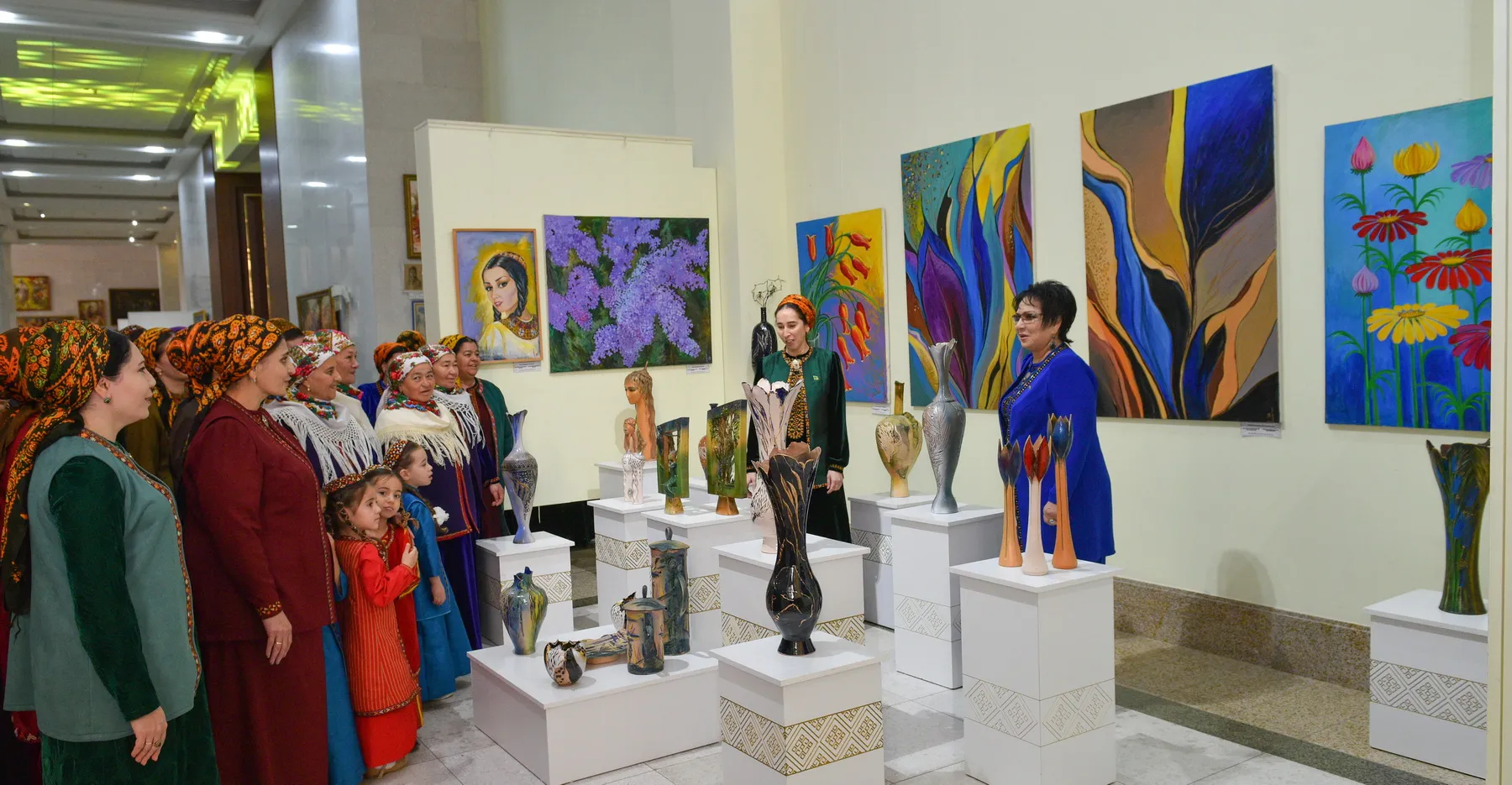 В четырех залах Музея изобразительных искусств Туркменистана развернулась совместная художественная выставка, посвященная Международному женскому дню, сообщает “Туркменистан: Золотой век“.