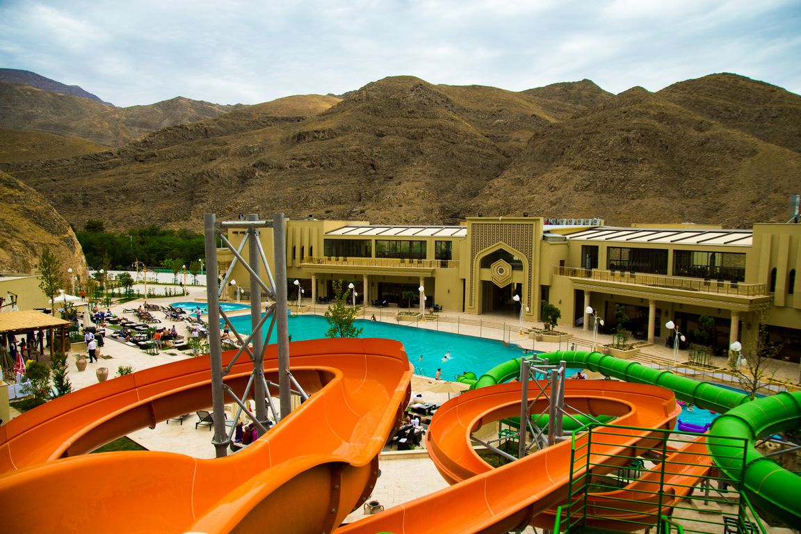 Howuzlar akwapark bilen üpjün edilen. 15 metr beýiklikden howza tarap uzaýan açyk we ýapyk ýodalaryň her haýsynyň uzynlygy 100 metrden geçýär.