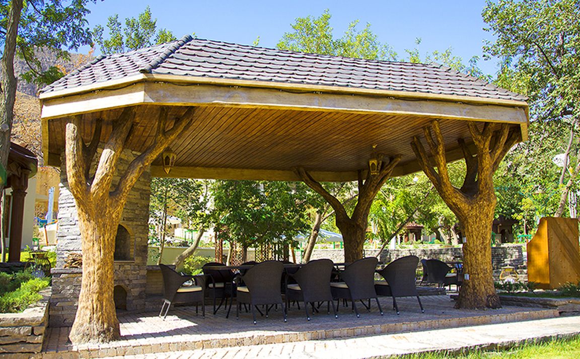 Bu restoranlardan başga-da, açyk howada hem üç sany dynç alyş toplumy bar. Olaryň ikisi 80, biri bolsa 60 adamlykdyr. Bu ýerden Gökderäniň ajaýyp tebigaty, Köpetdagyň beýik hem ýylçyr gaýalary göwnüňi göterýär. Käbir stollaryň başynda bolsa ýörite peç hem gurnalypdyr. Olar merkezde öz elleri bilen dürli tagamlary bişirmek isleýän müşderilere niýetlenendir.