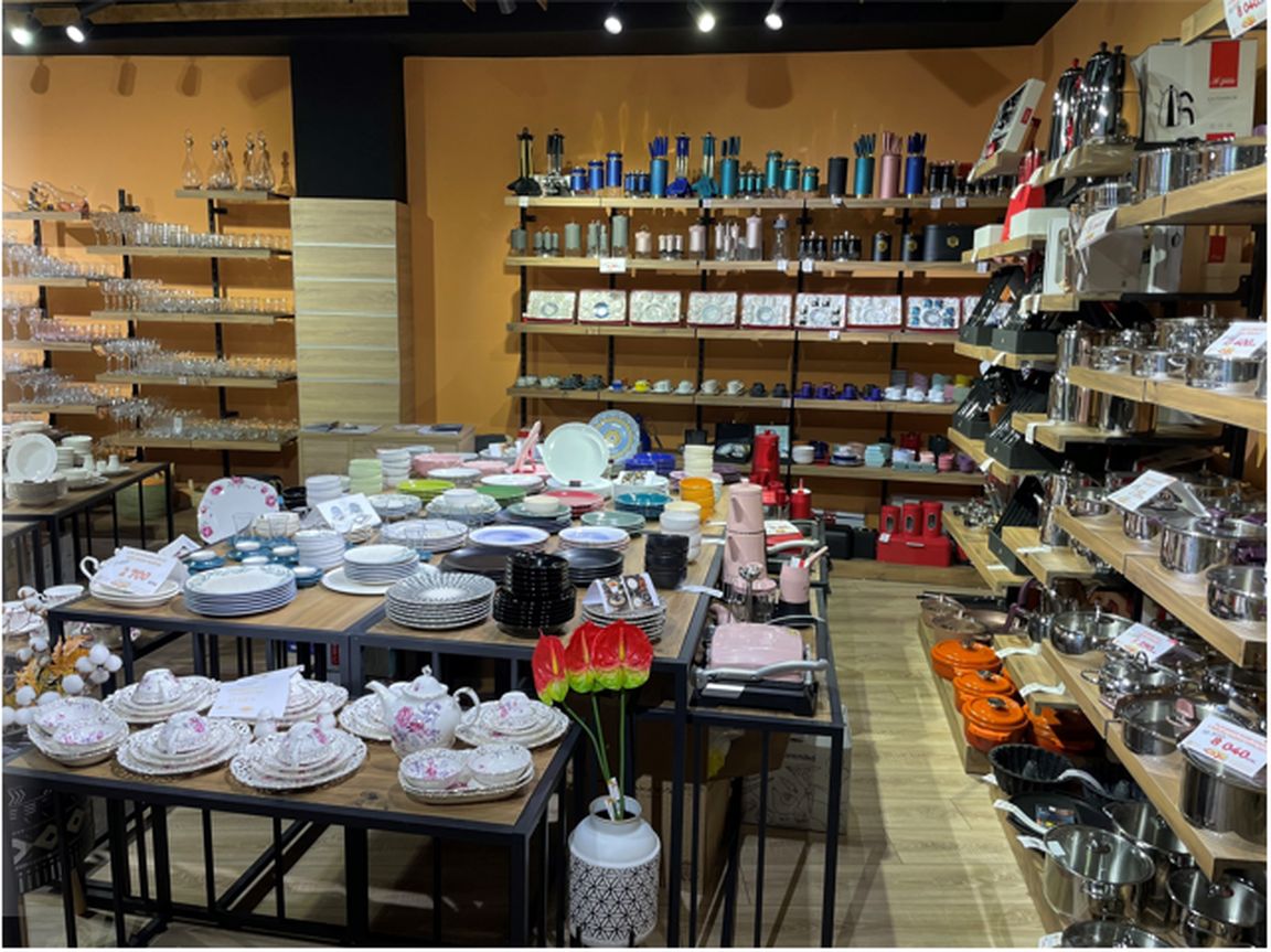 Söwda dükanynda ajaýyp aşhana enjamlaryny, şol sanda çaý we kofe gap-gaçlaryny, dürli ululykdaky gaplary we saçlary, çörek önümlerini bişirmek üçin niýetlenen gaplary, döwrebap aşhana üçin zerur bolan pyçaklary we beýleki gap-gaçlary tapmak bolýar.