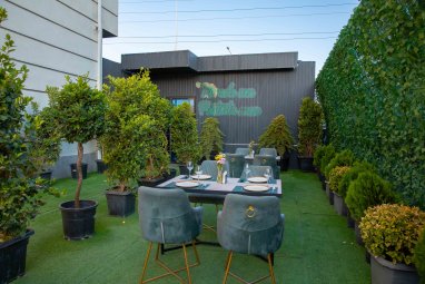 Terrasada restoranyň menýusynyň ähli esasy tagamlary — etli we balykly tagamlardan başlap täze bişirilen çörek önümlerine çenli, meze we meşhur türk süýjülikleri hödürlenýär. Iň köp islenilýän tagamlaryň hatarynda mangalda taýýarlanylýan däp bolan tagamlar we meşhur türk pahlawalarynyň 21 görnüşi bar. Bu ýerde romantik agşamy, iş duşuşygyny geçirip ýa-da dostlar bilen ýygnanyşyp, rahat gurşawda agşamlyk edinip bilersiňiz.