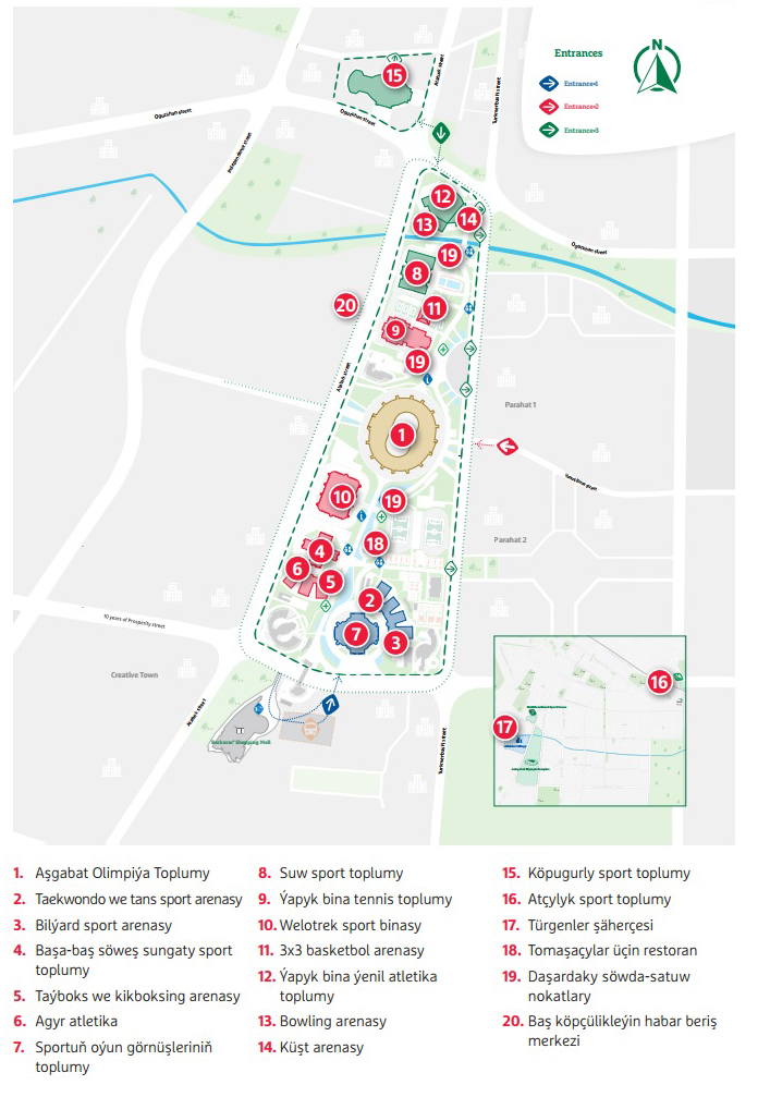 Aşgabat 2017-niň Oýunlaryna tomaşa etmek üçin geleniňizde şu maglumatlar size goldaw berer: