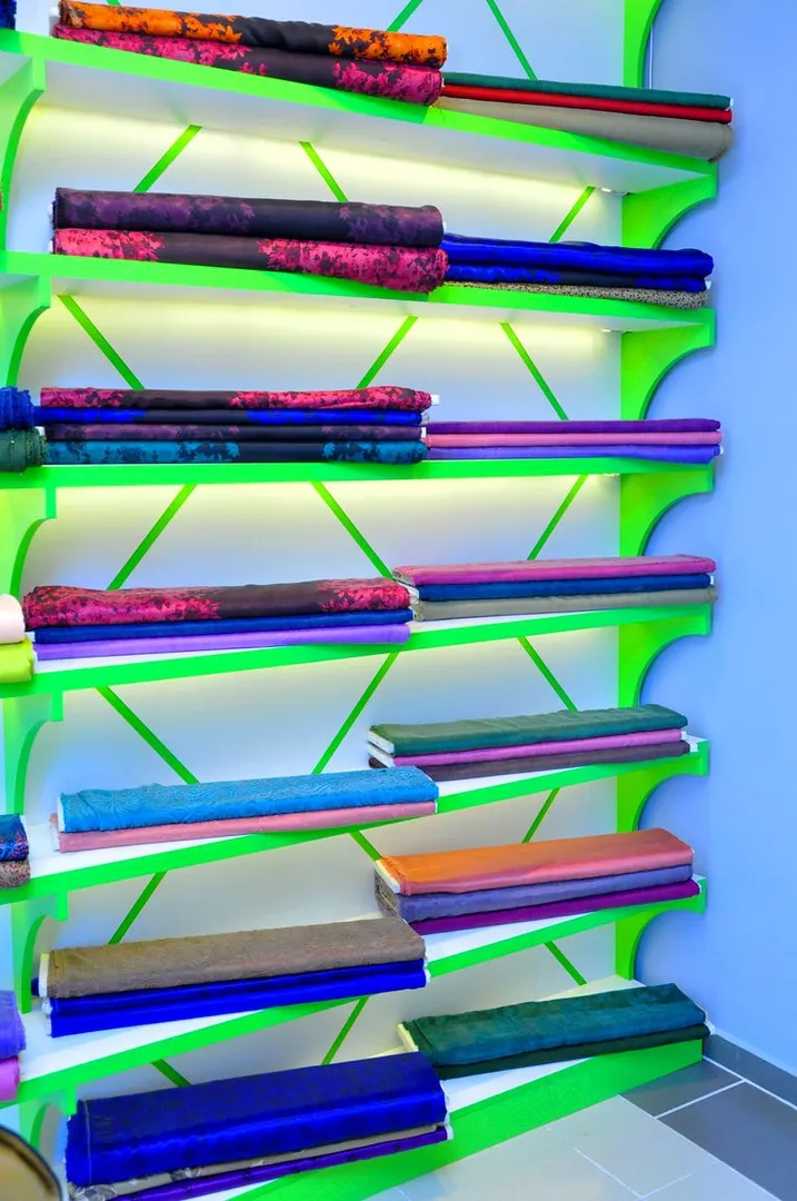 Bu ýerdäki dükanlarda düz bambuk, gülli, özünden gülli, reňksiz we reňkli gülli bambuk we başga-da birnäçe görnüşli matalary almak mümkinçiligi bar.