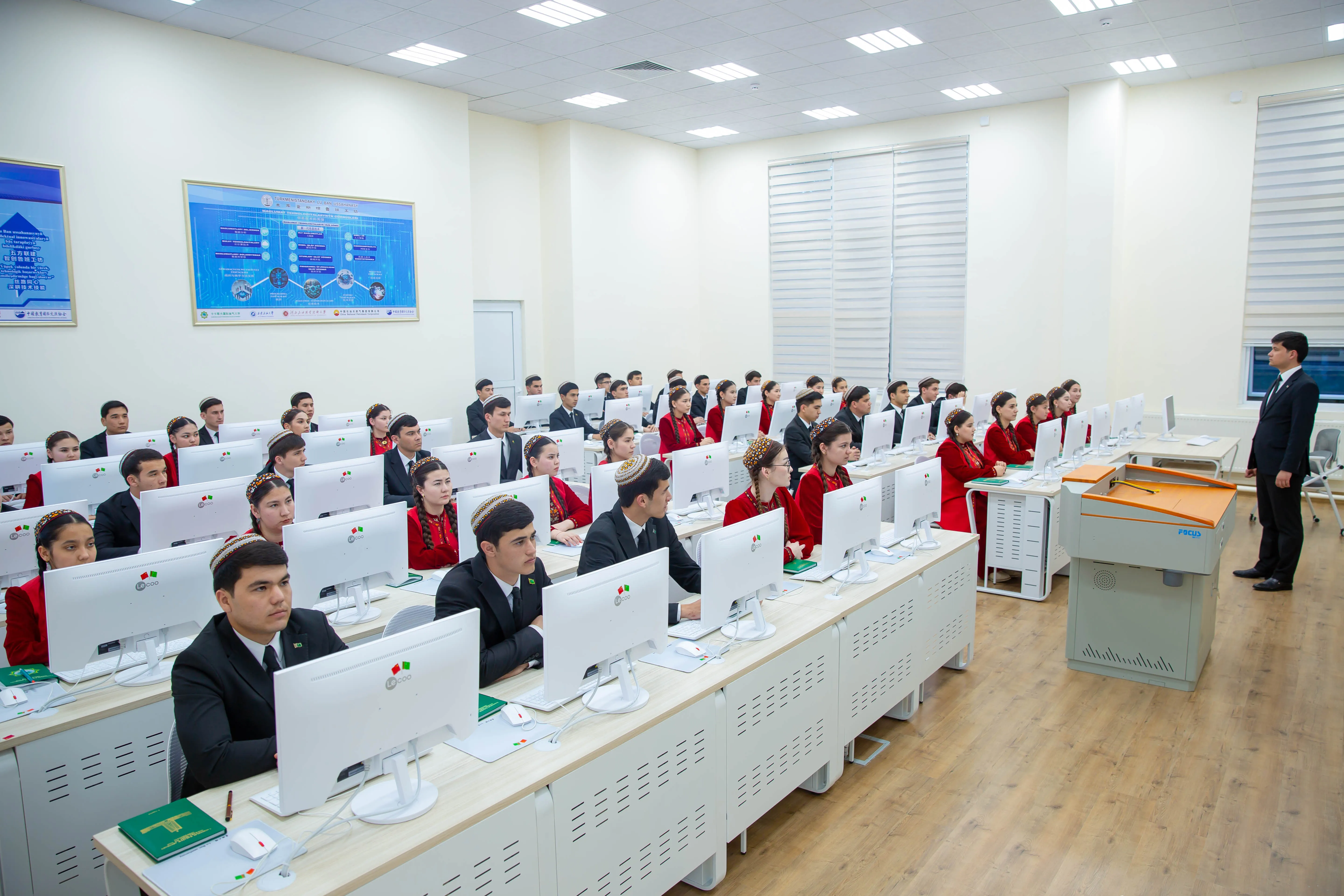 Bellenilişi ýaly, ýokary okuw mekdebiniň çäklerinde Lu Ban ussahanasynyň açylmagy degişli ugurlar boýunça ýokary derejeli hünärmenleri taýýarlamak üçin uly ähmiýetli okuw-önümçilik merkezine öwrüler. Bu taslamany amala aşyrmak üçin uly işler durmuşa geçirildi. Dabara gatnaşyjy myhmanlar Lu Ban ussahanasynyň birinji biologiýa tejribehanasy hem-de birinji maglumat-tehnologiýalar otagy bilen tanyşdylar. Hytaýly hünärmenler Türkmenistandaky Lu Ban ussahanasynyň biologiýa tejribehanasynyň häzirki zaman barlaghana enjamlary we maglumat-tehnologiýalarynyň sanly serişdeleri boýunça uniwersitetiň professor-mugallymlary üçin hünär kämilleşdiriş okuwlaryny geçdiler. Şeýle-de okuwlaryň çäklerinde amaly sapaklar geçirilip, täze enjamlar bilen işlemek, olaryň tehniki mümkinçiliklerini doly peýdalanmak boýunça hünär başarnyklary kämilleşdirildi.