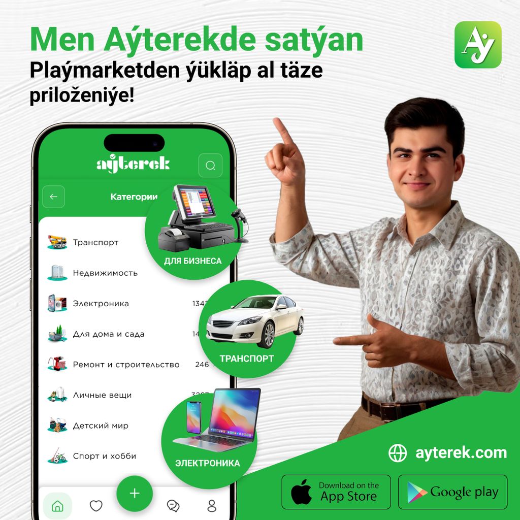 «Aýterek» mobil goşundysy dürli harytlary çalt we aňsatlyk bilen satmak hem-de satyn almak isleýänler üçin göwnejaý ýardamça öwrüldi. Bu platforma gozgalmaýan emläkleri, elektronika enjamlaryny, öý goşlaryny, egin-eşikleri we esbaplary satýanlaryň we alyjylaryň arasynda özboluşly meşhurlyk gazandy. Amatly saýhallama we giňişleýin ugurlar reňk, ululyk we haryt nyşany ýaly aýratynlyklaryny görkezip, zerur önümleri aňsatlyk bilen tapmaga mümkinçilik berýär. «Aýterek»-de mahabat goýmagyň düýbünden mugtdugyny we çäksizdigini bellemelidiris. Bonuslar ulanyjylara mahabatlaryny has-da giňden ýetirmek we şertnamalary has çaltlaşdyrmak üçin niýetlenendir.